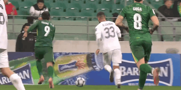 45+1' Zhang Jianzhi mắc lỗi và tặng quà, hậu vệ Guoan quay lại phòng ngự và phá bóng giải quyết nguy hiểm
