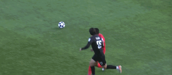 45' Hina chặn bóng ở phần sân trước để tạo thành một bàn thắng duy nhất, và thủ môn phải vất vả cứu bóng cứu đồng đội