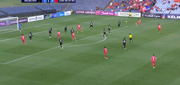 18' Hà Nội chuyền bóng từ cánh trái vào vòng cấm, gây hỗn loạn trong khu vực ba giây