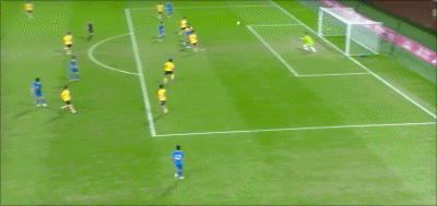 19' Zhong Wen quay người rê bóng trong khu vực ba giây rồi vô lê, bóng đi chệch mục tiêu