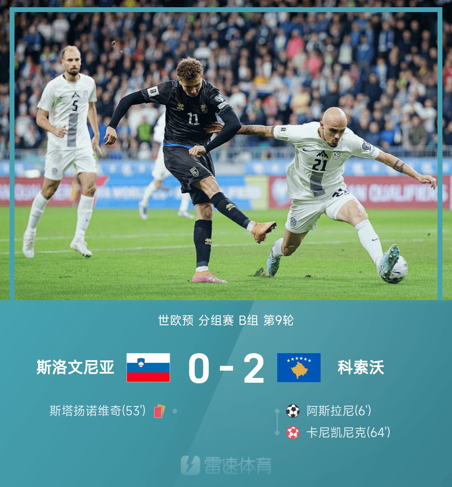 6686 Sports đưa tin ngày 16/11 rằng ở lượt 9 bảng B Vòng loại khu vực châu Âu thế giới 2026, Kosovo đã đánh bại Slovenia với tỷ số 2-0. Xuyên suốt trận đấu, Aslani lừa đối thủ ở khu vực ba giây và ghi bàn, Kanikenik đá phản lưới nhà tạo nên làn sóng thế giới, cầu thủ dự bị của Stajanovic vào sân và bị đuổi khỏi sân hai thẻ vàng liên tiếp, còn Oblak liên tục thể hiện sức mạnh để cứu vị cứu tinh.