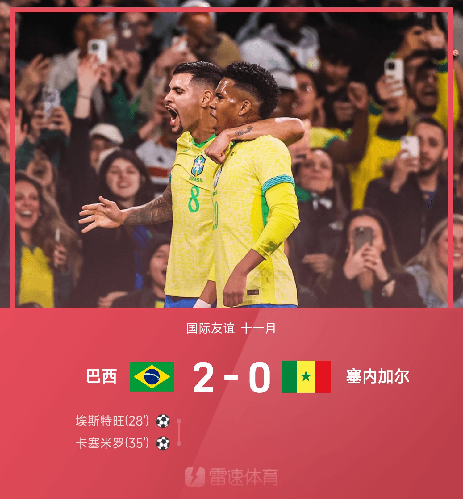 Tường thuật trận giao hữu quốc tế: Esteban và Casemiro ghi bàn, Brazil 2-0 Senegal