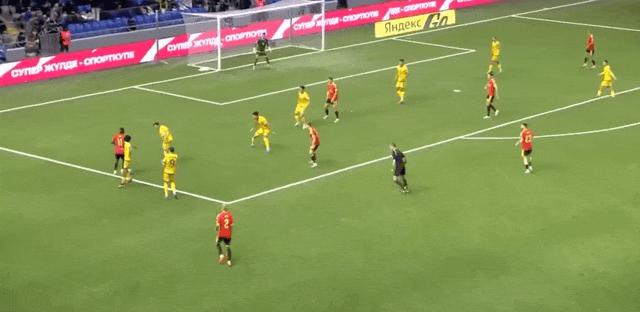 61'Arip tấn công vào khung thành của mình bằng một cú đâm, Anabekov đã cản phá xuất sắc để chặn bóng