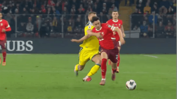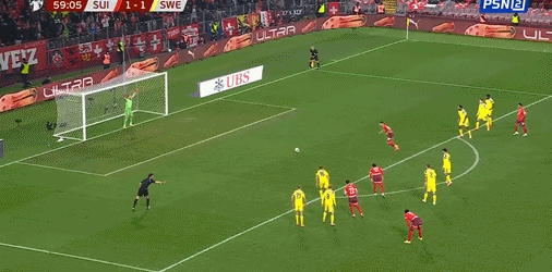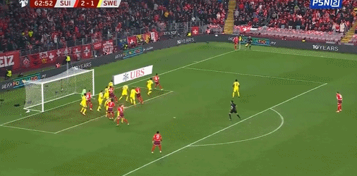 31’ Thụy Sĩ thực hiện một pha đe dọa chuyền bóng trong vòng cấm, nhưng Widmer đánh đầu tung lưới nhưng đi chệch mục tiêu