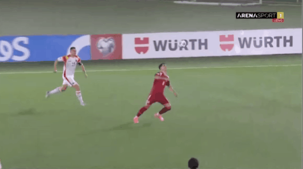 67' Kostovich đón bóng trước khung thành, xoay người rê bóng và vô lê, bóng đi xà ngang và bay ra khỏi vạch vôi