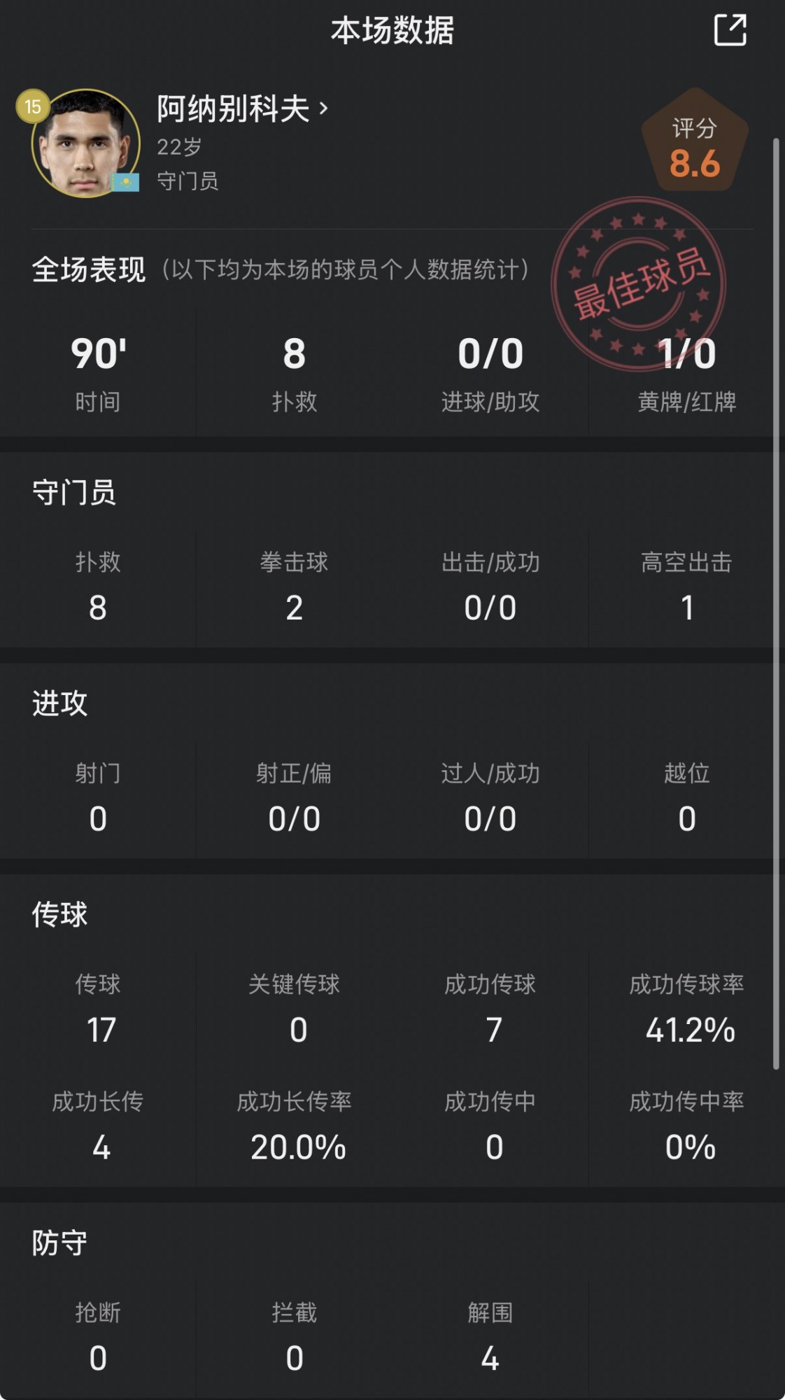 Những pha cứu thua nổi bật của Anabekov trong chiến dịch này