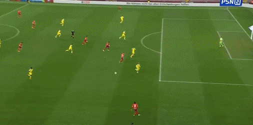 31'Thụy Sĩ đe dọa chuyền bóng trong vòng cấm nhưng cú đánh đầu của Widmer lại đi chệch mục tiêu