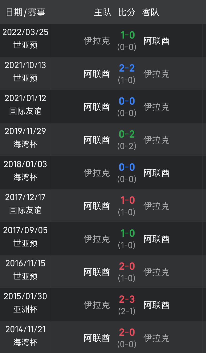 Dữ liệu cho thấy UAE đã đối đầu với Iraq trong 10 lần gần đây, với thành tích 4 thắng, 3 hòa và 3 thua, ghi 10 bàn và thủng lưới 8 bàn. Dù có vẻ như UAE có chút lợi thế nhưng trong 5 trận gần đây giữa hai bên, UAE chỉ ghi được 3 trận hòa và 2 trận thua và đã thua tới 4 lần.