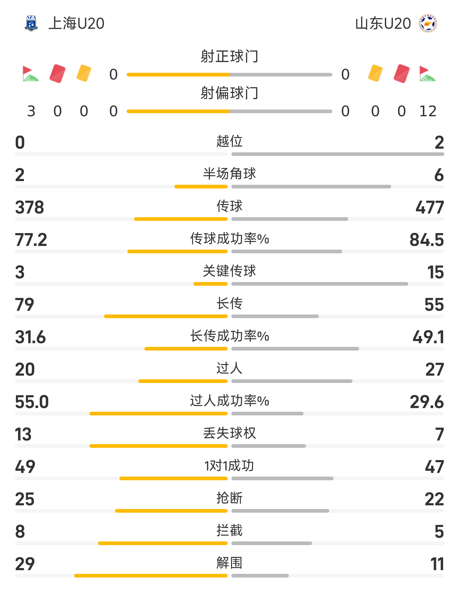 Trong trận đấu trên sân 12, Gong Ruicong của đội U20 Sơn Đông đá hỏng quả phạt đền ở hiệp hai và tất cả các cầu thủ khác của hai đội đều thực hiện quả ném phạt. Chung cuộc, đội U20 Thượng Hải đã đánh bại U20 Sơn Đông với tỷ số 5-4 trong trận chiến trên sân 12m và giành vị trí thứ 3.