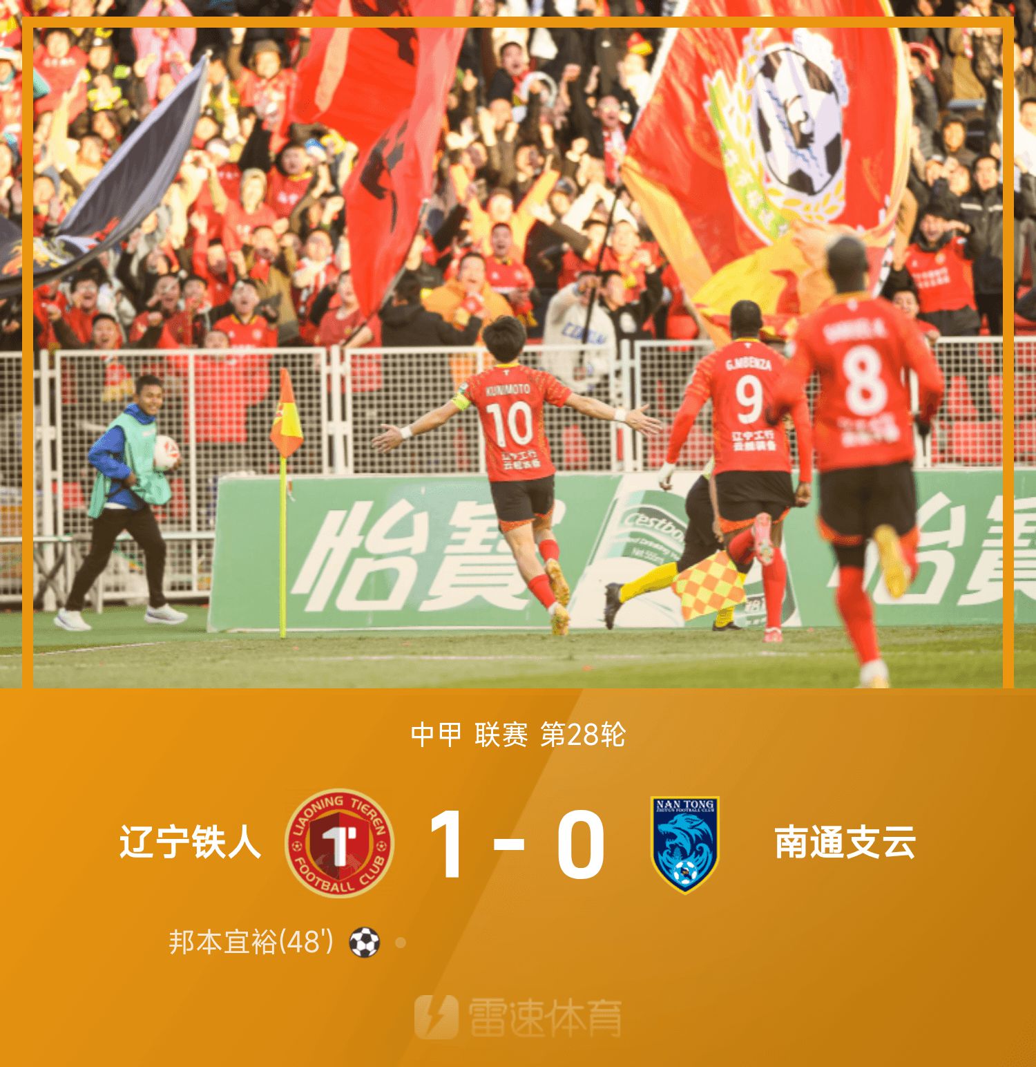6686 Sports đưa tin ngày 26/10 rằng ở vòng 28 giải Chinese League One 2025, Người sắt Liêu Ninh thi đấu với tư cách đội chủ nhà trước Nantong Zhiyun. Trong nửa đầu của chiến dịch này, không bên nào ghi được bàn thắng. Sau khi đổi bên và giao tranh lần nữa, Kunimoto Yiyu kết nối với đường chuyền chân to của Gao Jiarun từ đầu vòng cung và đẩy vào góc xa để ghi bàn. Cuối trận, Liaoning Ironman đã đánh bại Nantong Zhiyun 1-0, khóa chức vô địch của giải VĐQG Trung Quốc mùa này trước hai vòng và thành công vượt qua giải đấu.