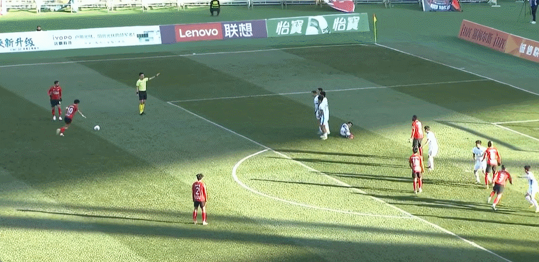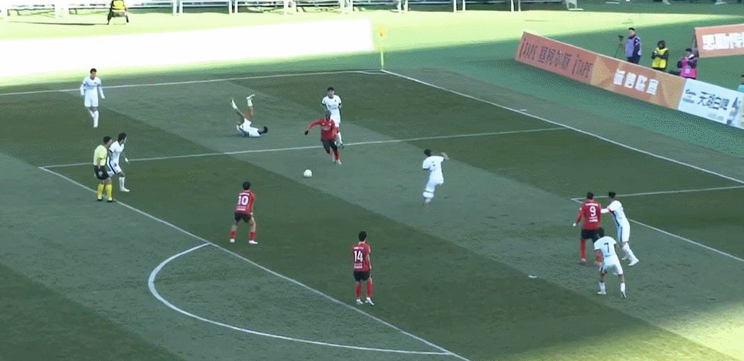 64’ Chen Binbin nhận đường chuyền ngang trong khu vực ba giây và bắt đầu quét bóng. Liu Weiguo cứu bóng ổn định