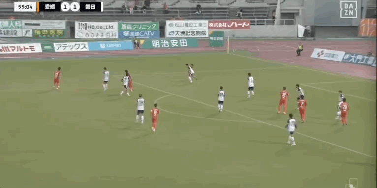 36' Cấp độ nào? Cầu thủ Ehime cản bóng trong khu vực ba giây và trực tiếp cản bóng ra ngoài biên