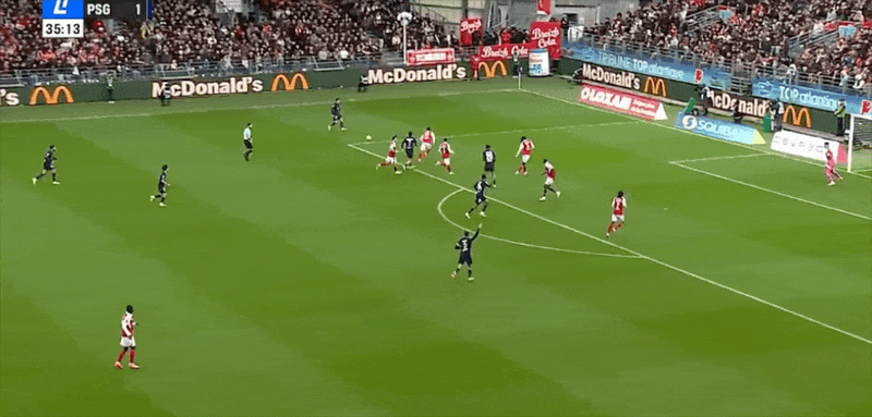 24' Paris phối hợp nhịp nhàng ở phần sân trước, Mayulu đối mặt với thủ môn chỉ bằng một cú sút và được cứu