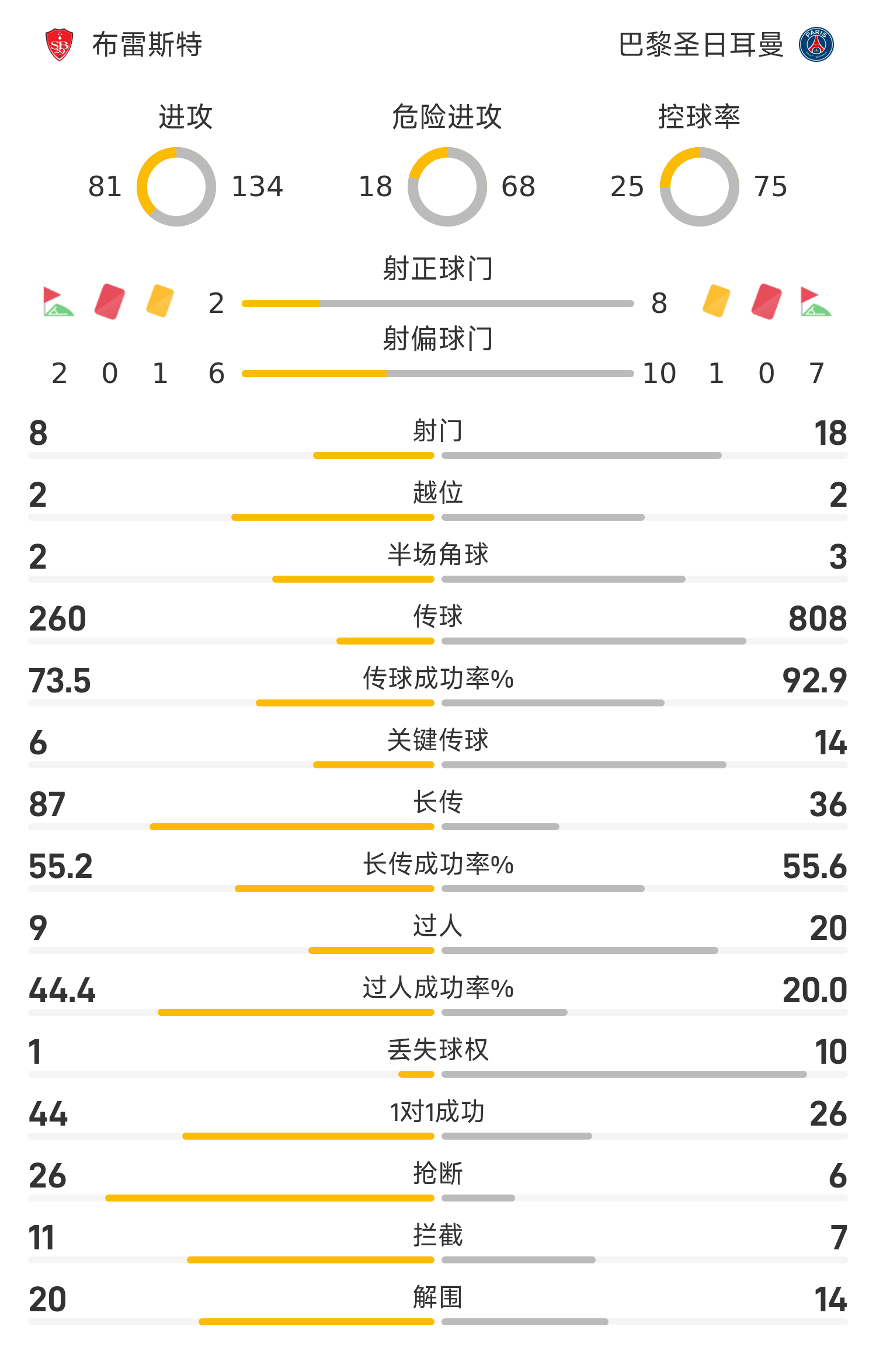 87' Brest phản công ở phần sân phía trước, Balde mất thăng bằng và sút trúng khung thành chỉ sau một cơ hội duy nhất.