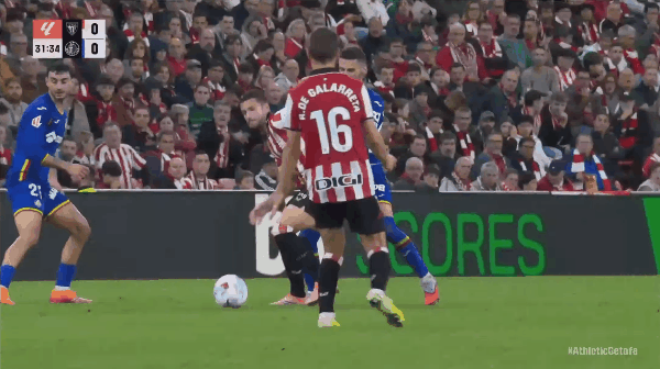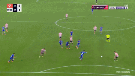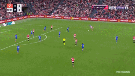 54' Guruzeta đánh đầu đưa bóng về phía khung thành khu vực ba giây, nhưng bóng đã bị thủ môn chặn lại