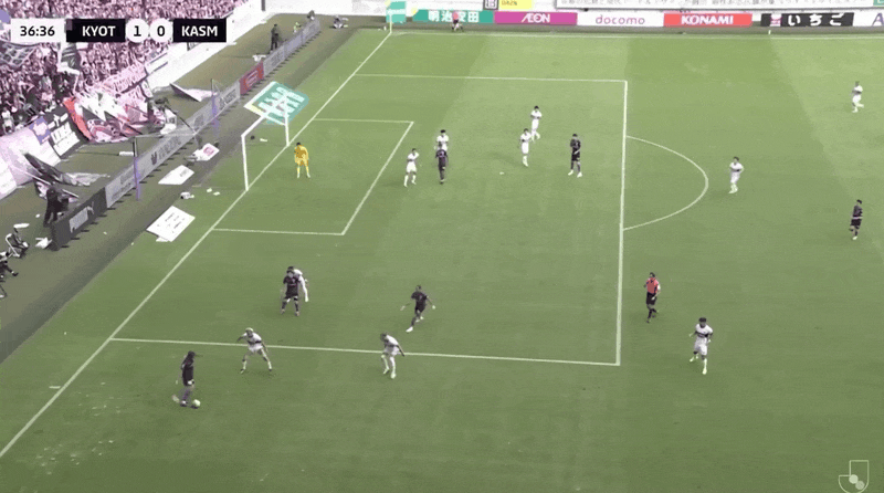 45+2' Kashima tạm dẫn trước Kyoto 0-1, Zico bên lề theo dõi trận đấu với vẻ mặt nghiêm nghị