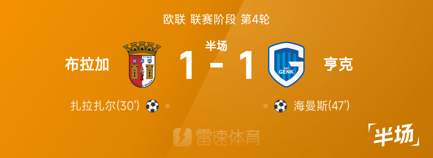 6686 Thể thao ngày 07 tháng 11 Ở vòng 4 Europa League 25/26, Braga đối đầu Genk. Sau giờ nghỉ giải lao, tỷ số giữa hai bên là Braga 1-1 Genk, do Zalazar và Heymans ghi bàn.