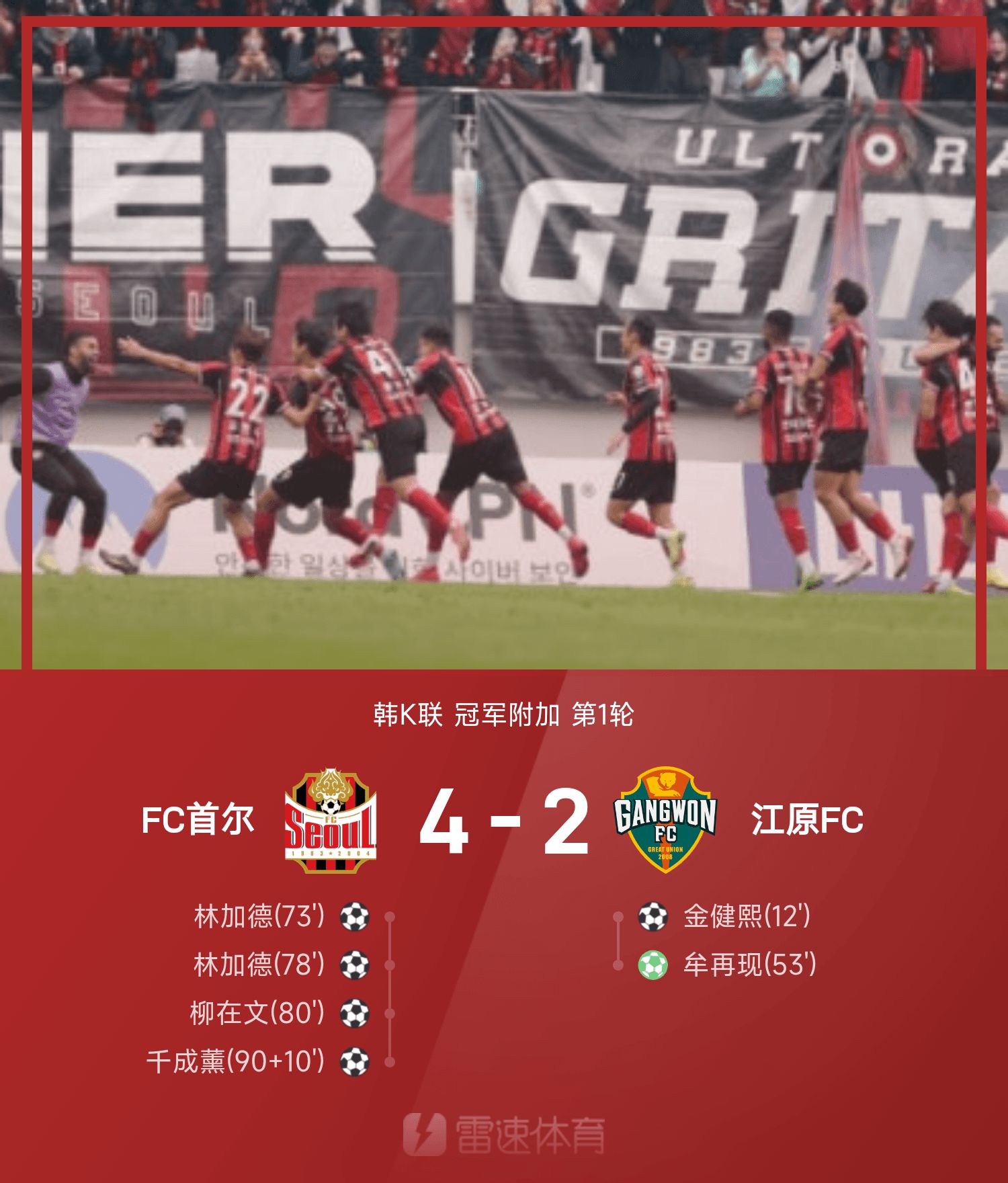 6686 Sports đưa tin ngày 26/10 rằng ở hiệp phụ đầu tiên của Giải vô địch K-League Hàn Quốc lần thứ 25, đội chủ nhà FC Seoul đã ngược dòng trước Gangwon FC 4-2. Kim Jianxi và Mou tái xuất giúp Gangwon có lợi thế dẫn trước 2 bàn; Lingard lập cú đúp, còn Ryu Jae-moon và Cheon Sung-hoon lần lượt ghi bàn, giúp Seoul lật ngược tỷ số 4-2.