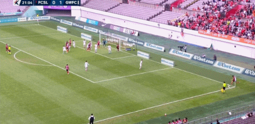 45+3' Gangwon thực hiện quả đá phạt trực tiếp trong khu vực ba giây, nhưng Li Sangxian không tạo ra được mối đe dọa nào