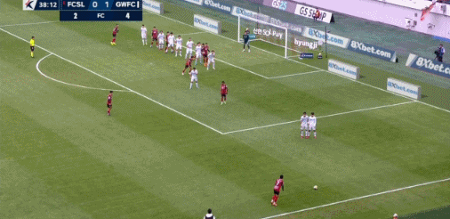 5’ Seoul quả đá phạt đi vào khu vực ba giây và Li Shengmo đã quá muộn để vượt qua khung thành
