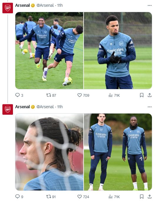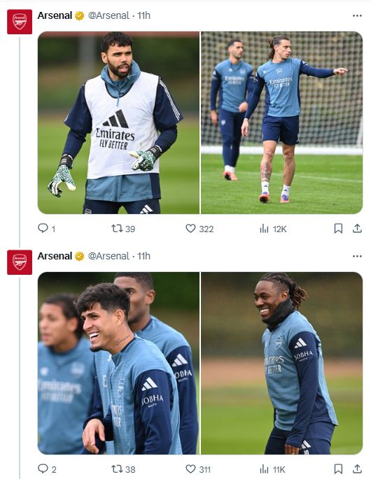 Những người hâm mộ tinh mắt phát hiện ra rằng nhân vật chủ chốt Saka đã biến mất trong những bức ảnh luyện tập này. Huấn luyện viên Arteta tiết lộ trước trận đấu rằng Gabriel bị chấn thương nên Gabriel không có mặt trong ảnh tập luyện, nhưng không ai nhắc đến tình hình của Saka, và sự vắng mặt của anh khiến người hâm mộ lo lắng.