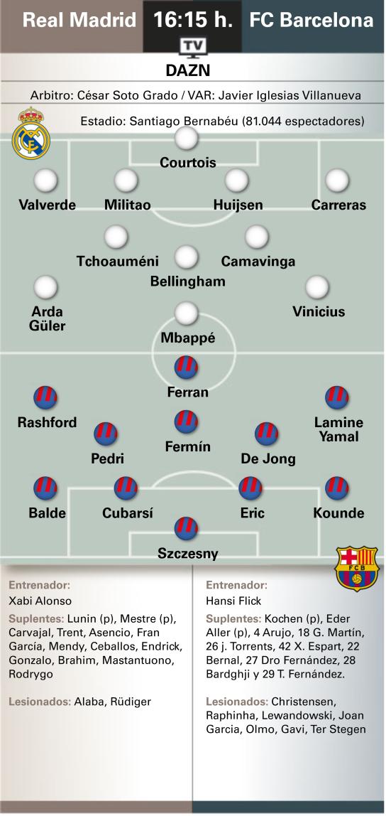 6686 Thể thao, ngày 26 tháng 10, lúc 23:15 tối nay, giờ Bắc Kinh, La Liga El Clasico sẽ được tổ chức tại Bernabeu. Đội Real Madrid gặp Barcelona trên sân nhà. Đây không chỉ là trận lượt đi của mùa giải “El Clasico” mà còn là cuộc đối thoại trực tiếp cho ngôi đầu bảng - nếu Barcelona thắng, Real Madrid sẽ lật ngược tình thế và leo lên ngôi đầu bảng. Trước trận đấu, “Bản tin thể thao thế giới” dự đoán đội hình xuất phát của hai đội.