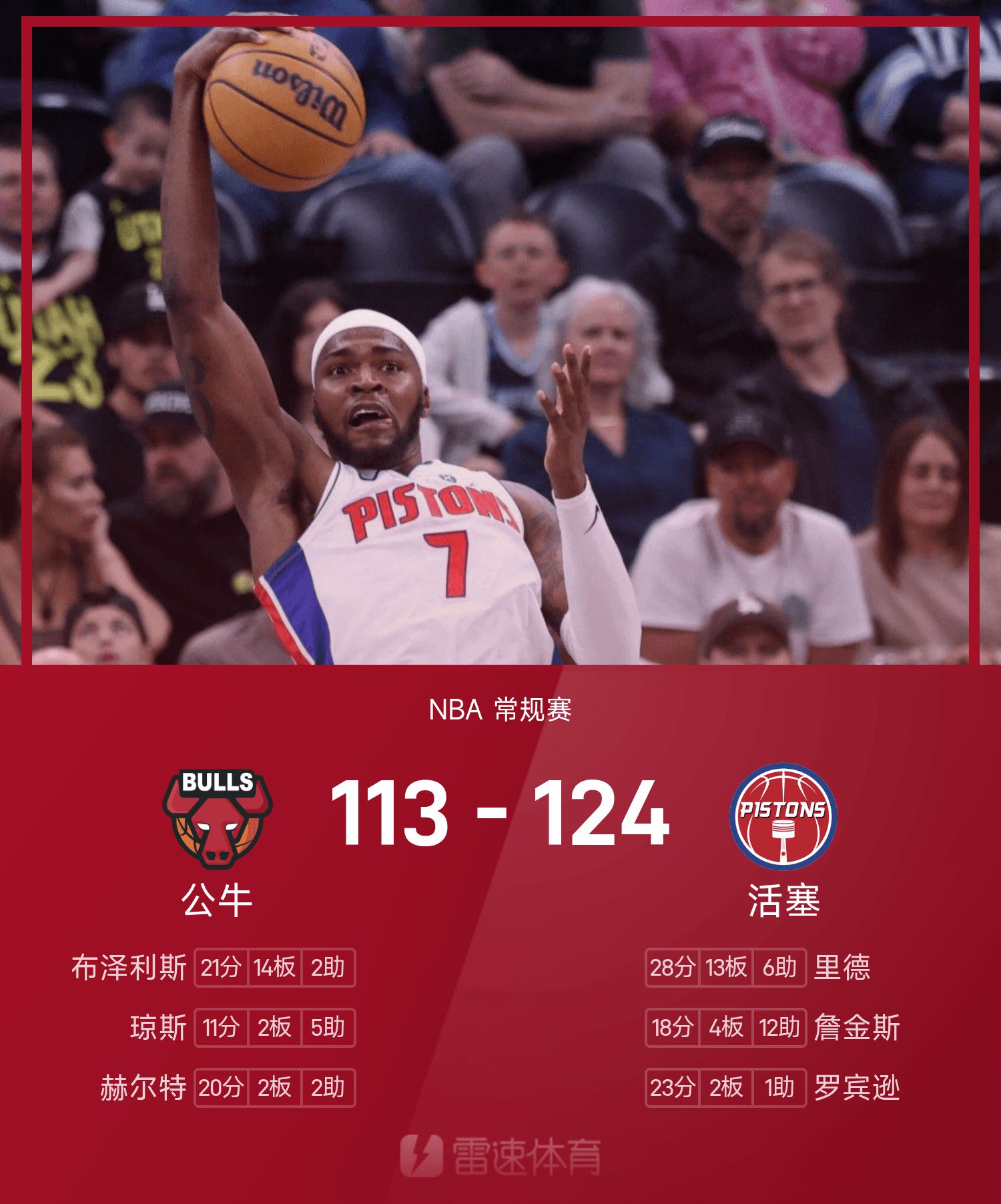Cuối trận, Pistons đánh bại Bulls với tỷ số 124-113.
