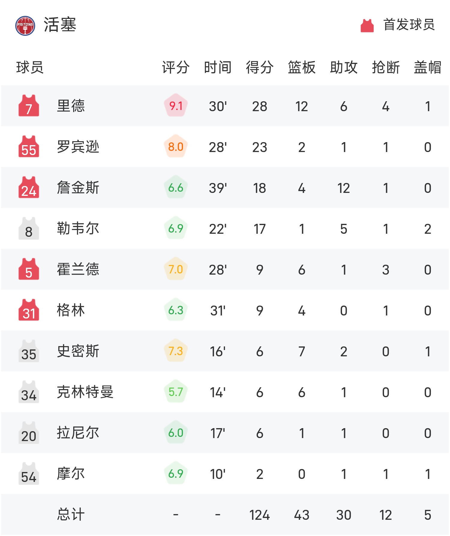 Reed ghi được 28 điểm cao nhất trận, 12 rebound và 6 kiến tạo, đưa Pistons đến chiến thắng.