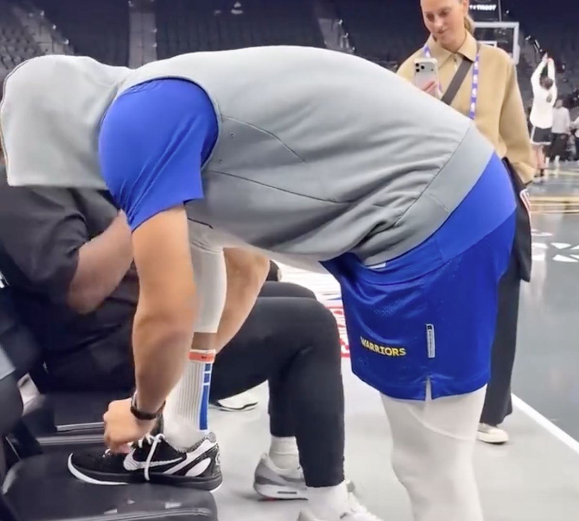 Điều đáng nói là Curry, người vừa tuyên bố chấm dứt hợp đồng với Under Armor ngày hôm qua, đã đi một đôi giày bóng rổ Kobe trong buổi tập trước trận đấu hôm nay, nhưng trong trận đấu, anh ấy lại đi hai đôi giày bóng rổ Under Armor.