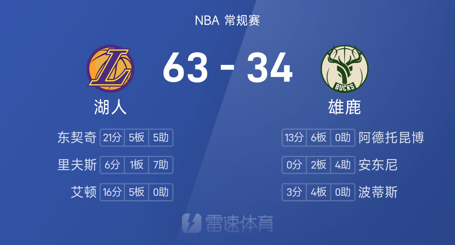 Hai bên hiện đang trong giờ nghỉ giải lao, với Bucks 34-63 và Lakers dẫn trước 29 điểm.