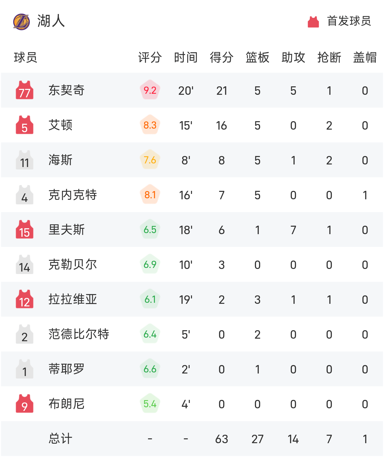 Doncic ghi được 21 điểm, 5 rebound và 5 kiến tạo, cao nhất trận, Antetokounmpo có 14 điểm và 5 lỗi, còn Kuzma thực hiện 0/6 cú sút và chỉ ghi được 1 điểm.