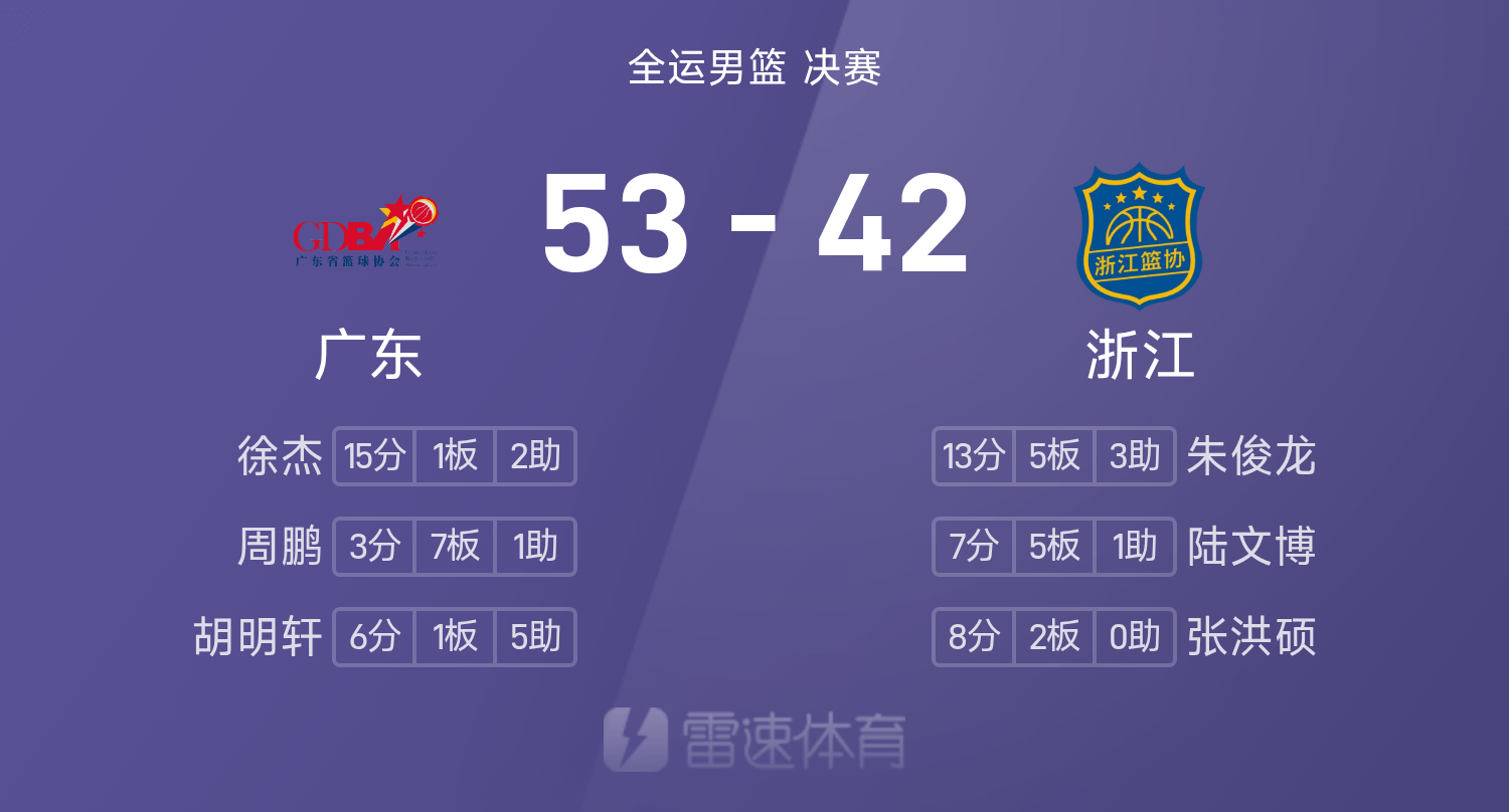 Trận chung kết bóng rổ nam Đại hội thể thao quốc gia Hiệp một: Zhu Junlong 13 + 5, Xu Jie 15 điểm, Quảng Đông 53-42 Chiết Giang