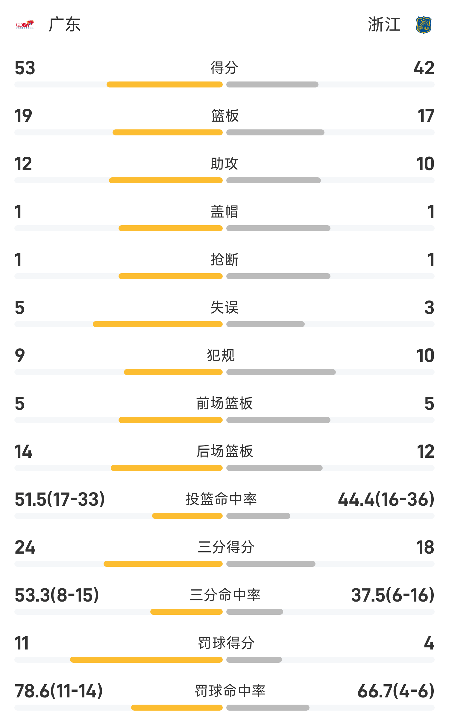 Hai bên hiện đang trong giờ nghỉ giải lao, Chiết Giang dẫn trước Quảng Đông 42-53.