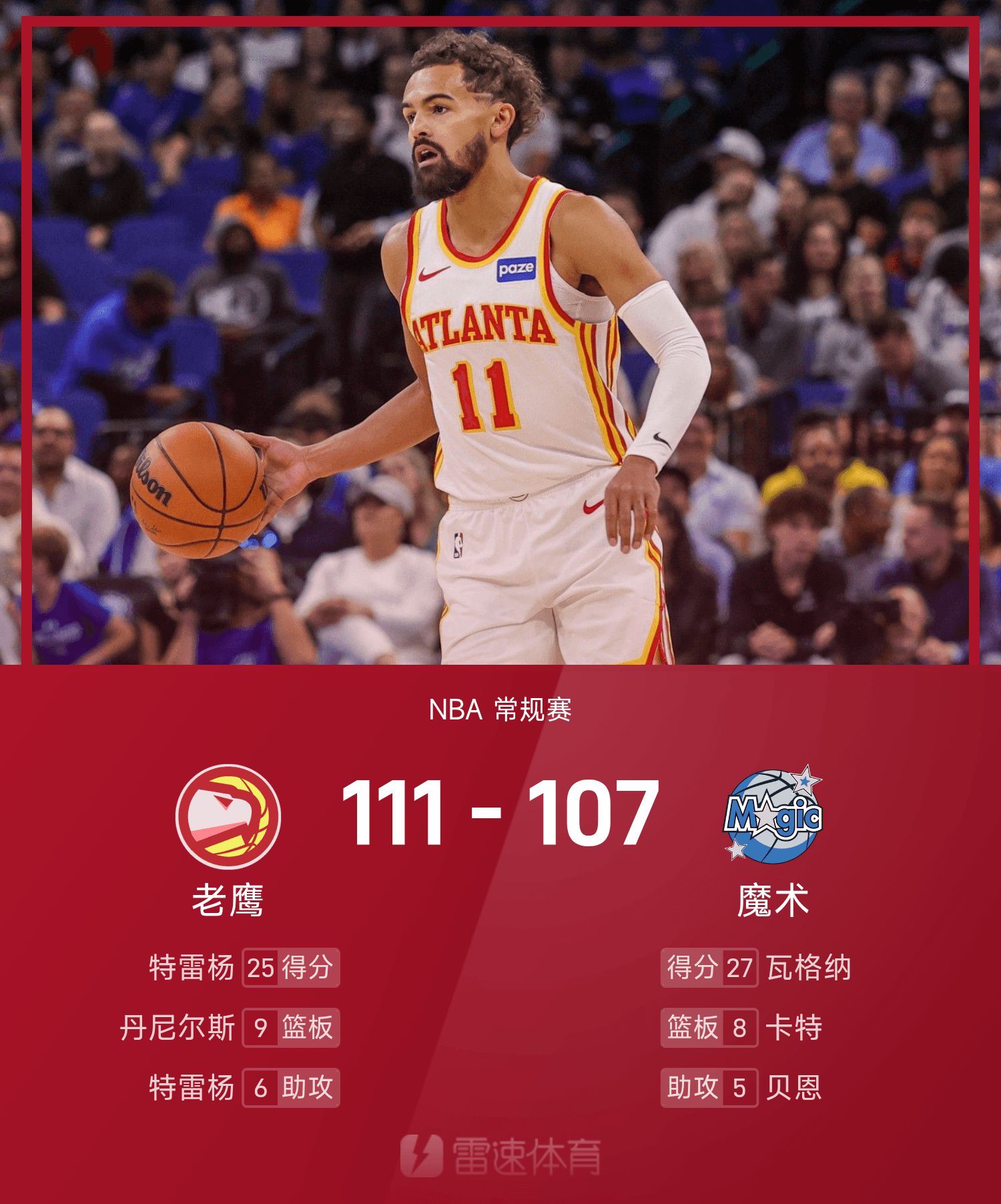 Trae Young thực hiện 7 trong số 18 cú sút và ghi được 25 điểm, 1 rebound và 6 kiến tạo.