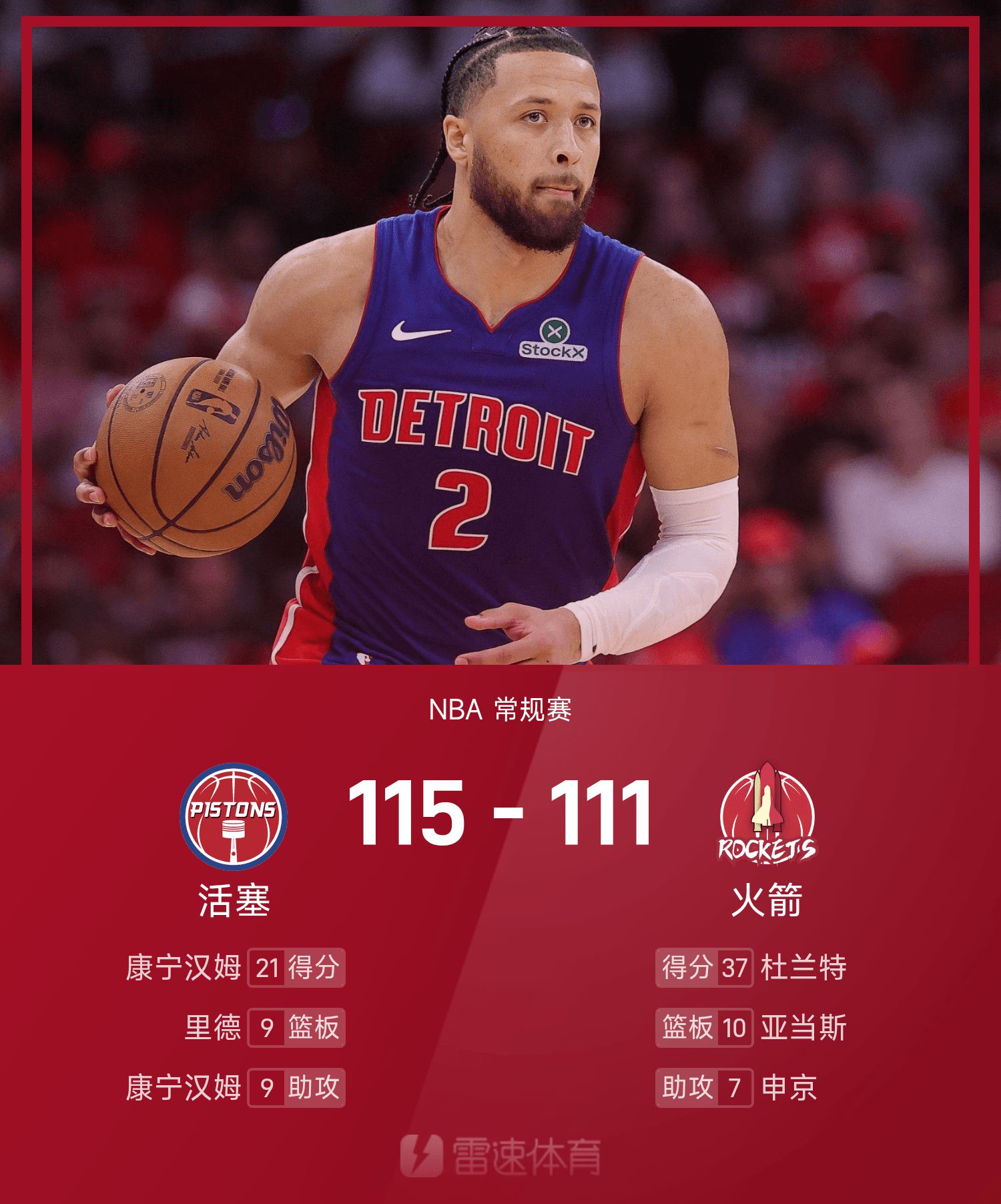 Cunningham thực hiện 7 trong số 16 cú sút và ghi được 21 điểm, 7 rebound và 9 kiến tạo.