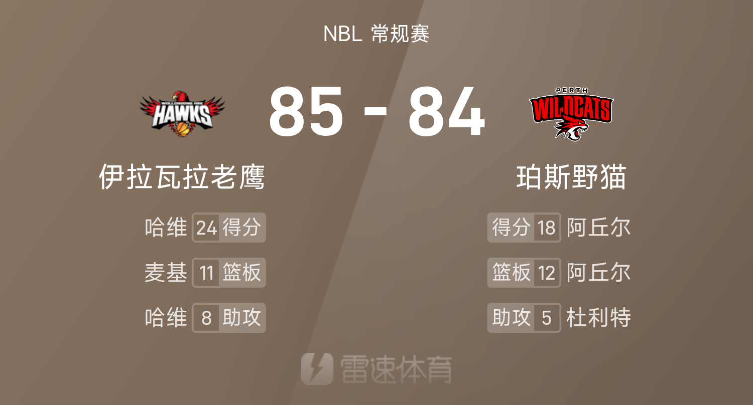 Báo cáo trận đấu NBL: Harvey ghi được 24 điểm và 8 pha kiến tạo, McGee thực hiện quả ném phạt cuối cùng, và Hawks suýt đánh bại Wildcats với tỷ số 85-84.