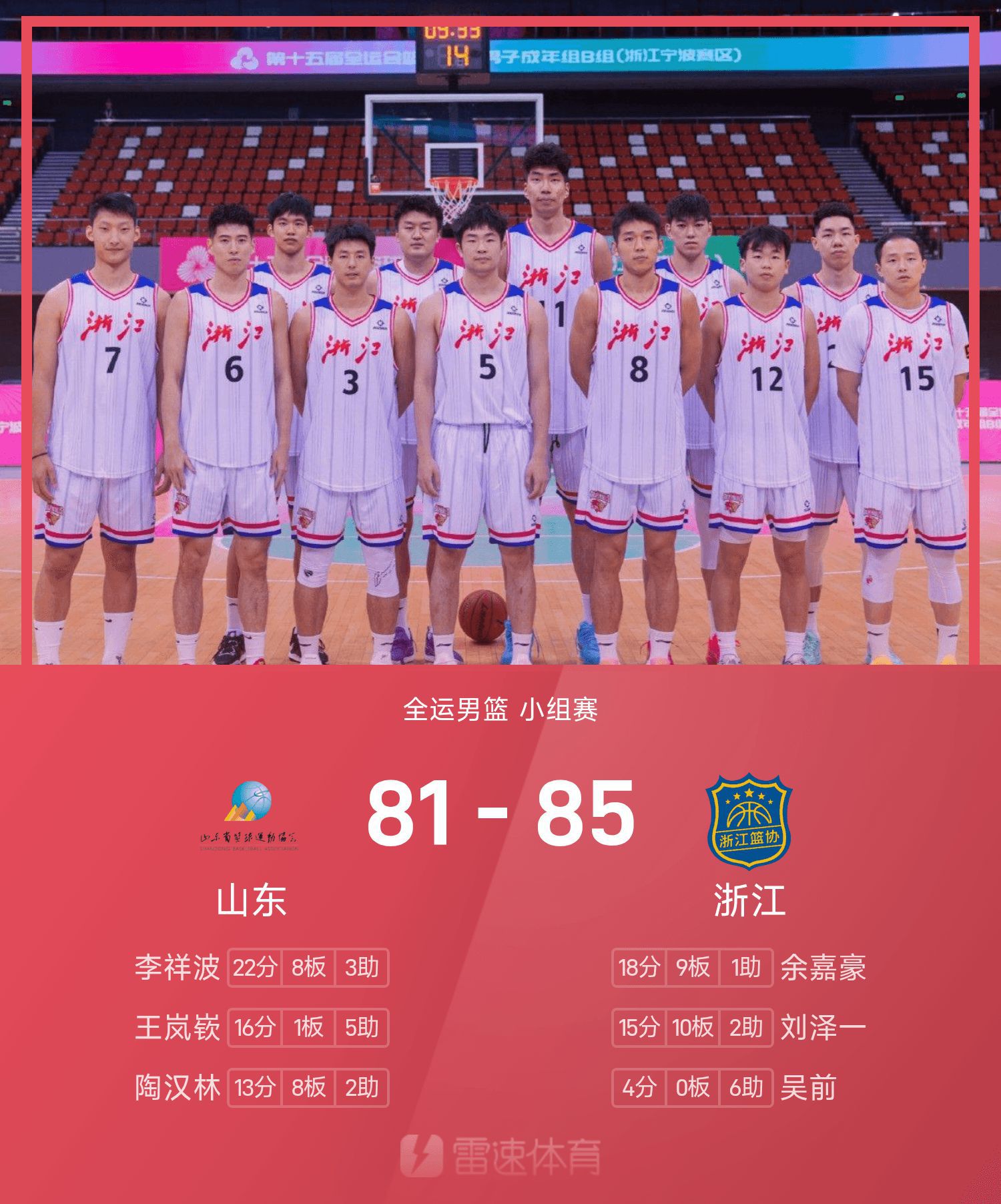 Báo cáo trận đấu bóng rổ nam Đại hội thể thao quốc gia: Yu Jiahao có 18 điểm và 9 rebound, Chiết Giang suýt đánh bại Sơn Đông 85-81