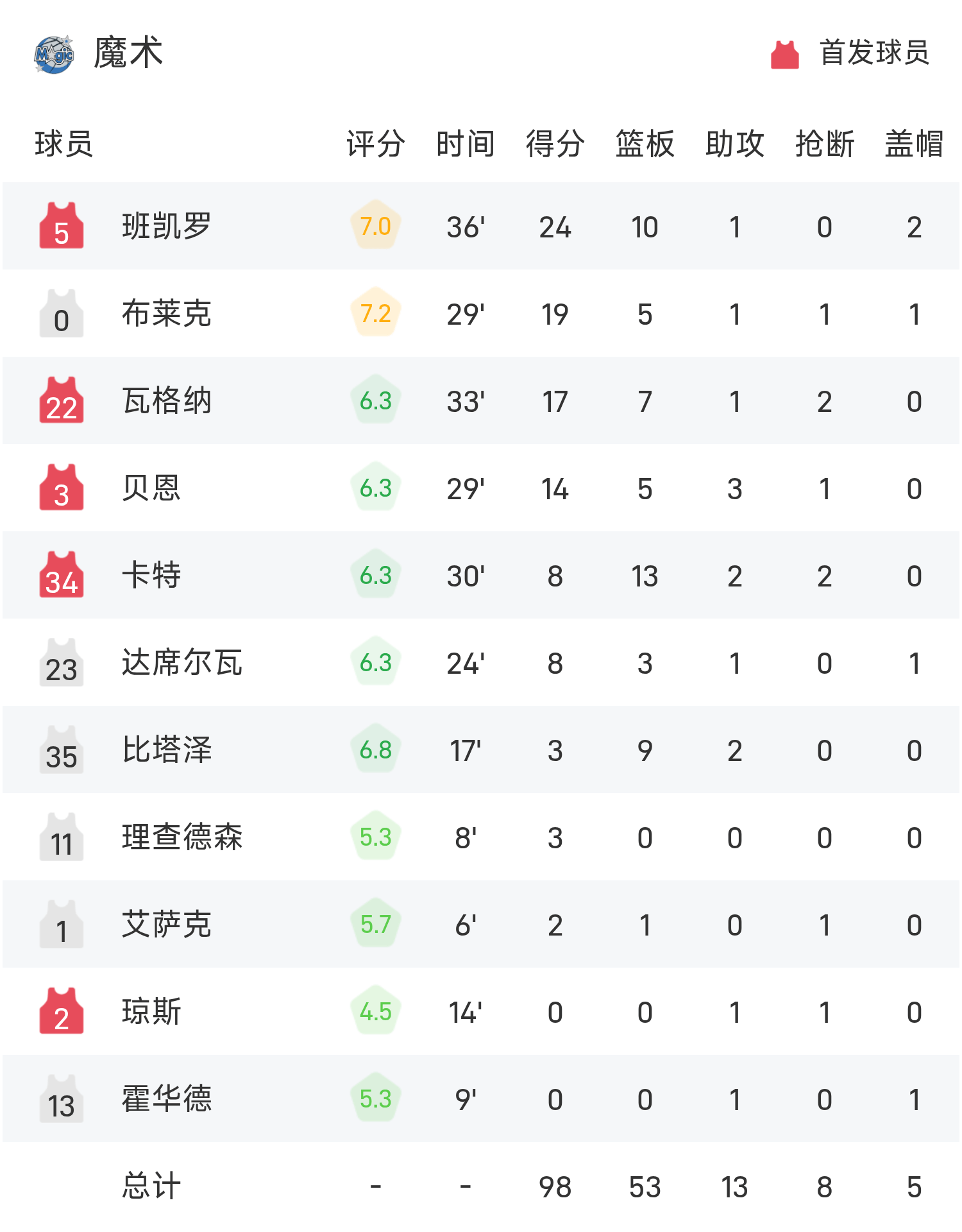 Cuối trận, Magic thua Bulls với tỷ số 98-110.